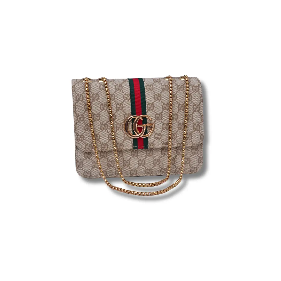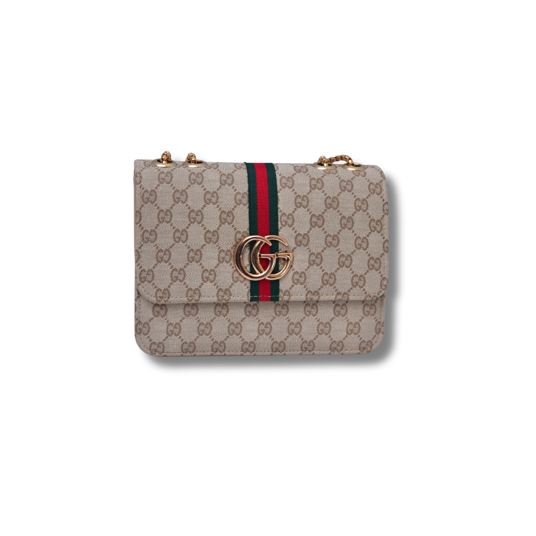 Elevate your fashion game with this crossbody bag. Featuring the iconic GG monogram print and signature center stripe detail, it combines timeless elegance with everyday practicality. The bold metallic GG logo and chic chain strap add a touch of glam, making it the perfect accessory for both day and evening wear. Crafted for those who appreciate high-end fashion, this bag effortlessly blends modern sophistication with a classic design.