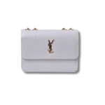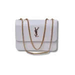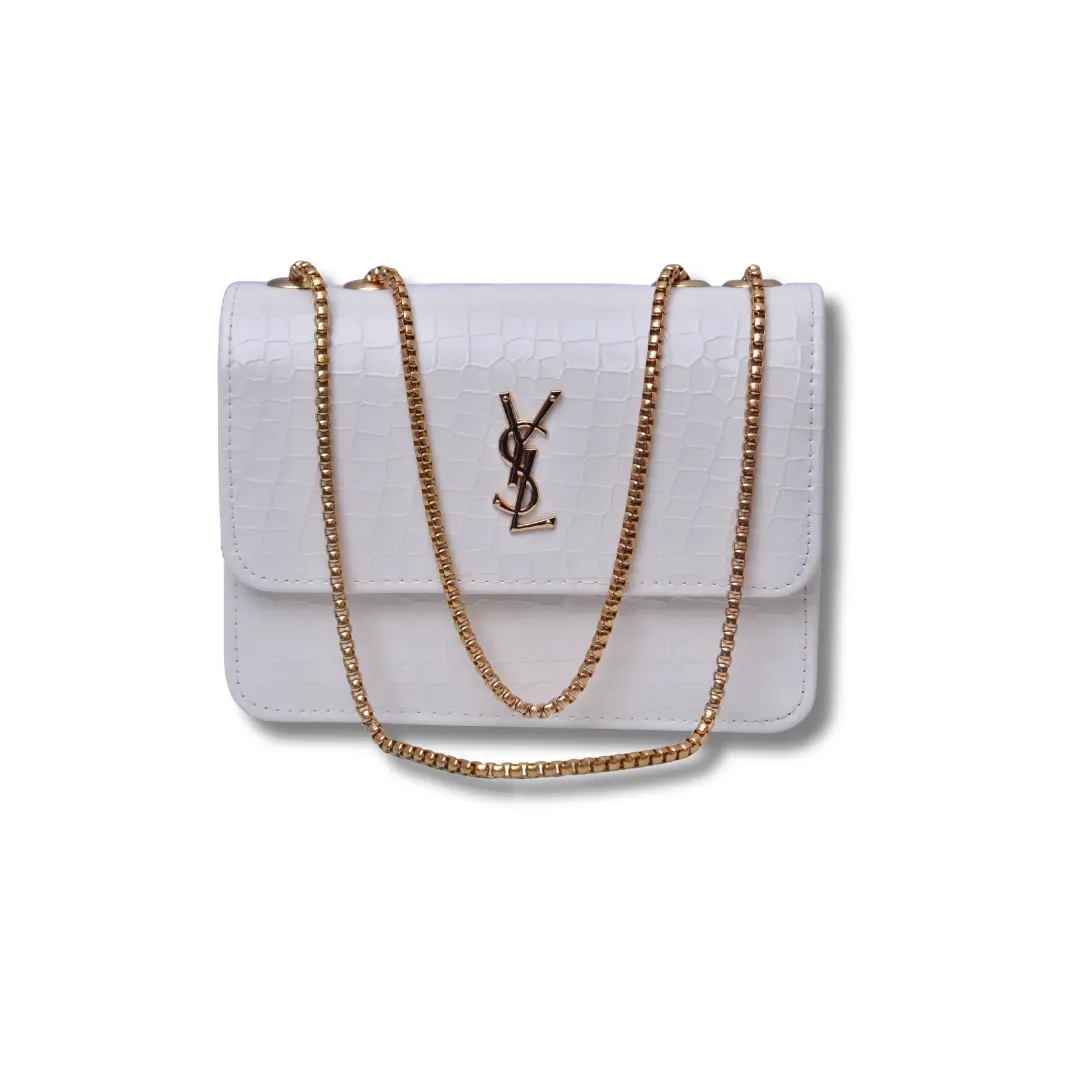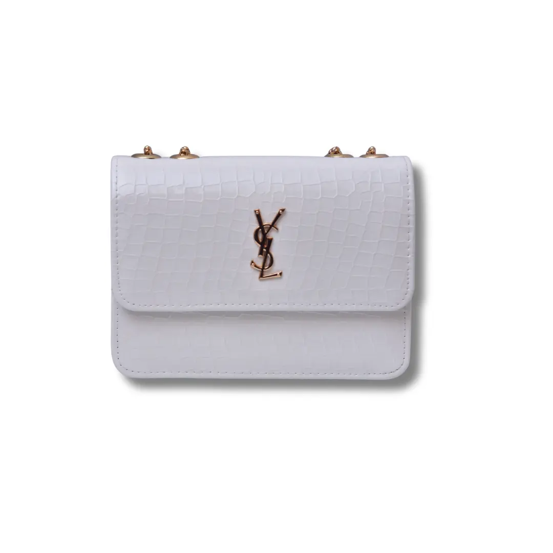 Add timeless charm to your wardrobe with this stylish white mini bag featuring a classy croc-textured finish. Inspired by the iconic YSL design, this bag brings together luxury and simplicity for a truly elegant look. Crafted from high-quality faux leather, the bag features a glossy gold YSL-style logo on the front, with a structured shape that keeps it looking sharp and chic. Perfect for casual outings, parties, or formal events, it’s a must-have accessory for any modern fashion lover.