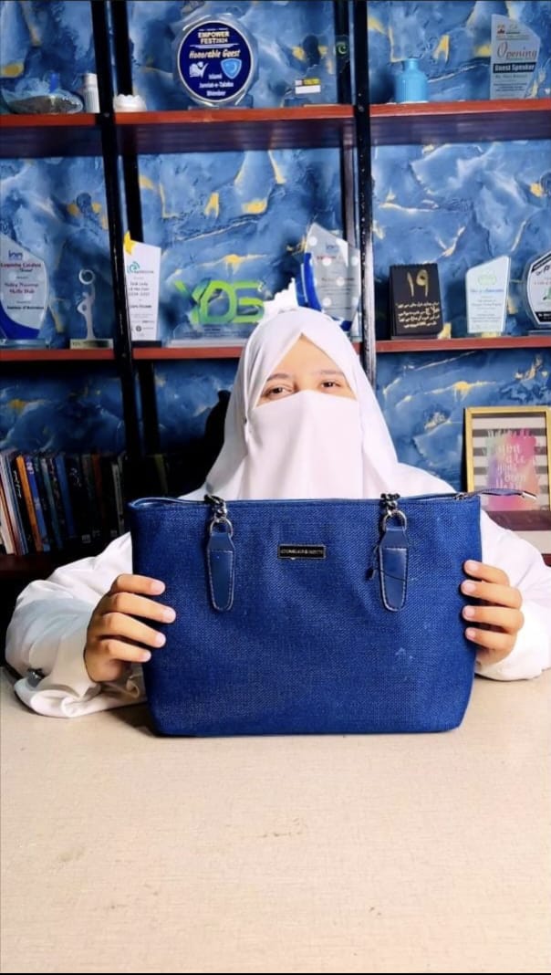 This beautiful jute bag is perfect for everyday use. It has a smart and elegant look with silver chain-style handles and a soft jute texture. The bag is lightweight but spacious enough to carry all your daily items like a wallet, phone, makeup, and more. You can carry it to work, shopping, or even with traditional dresses like shalwar kameez.